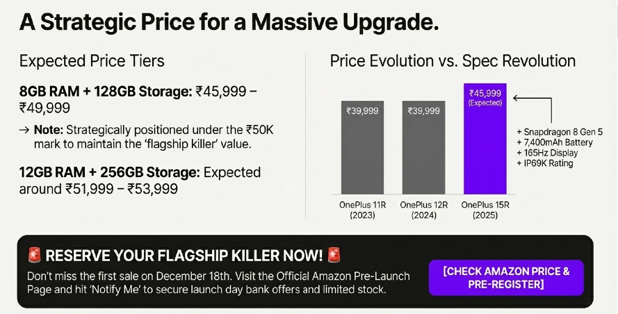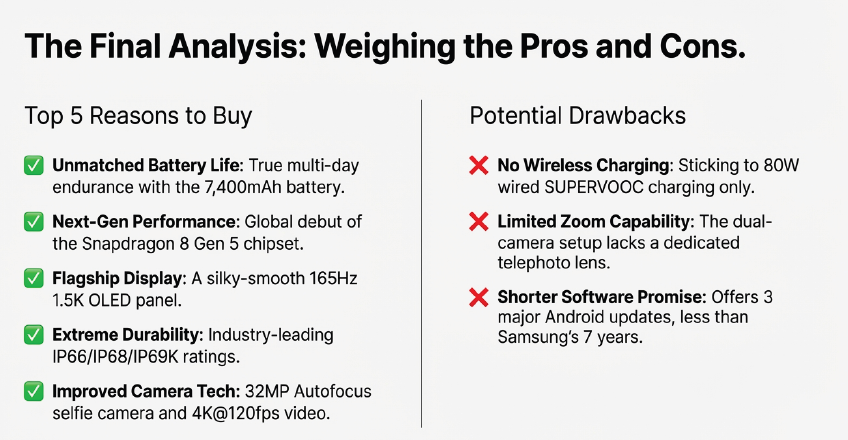 The OnePlus 15R is overwhelmingly positioned for success. With an unmatched combination of segment-leading performance, game-changing battery endurance, and superior durability, it is poised to become the definitive flagship killer of 2025.